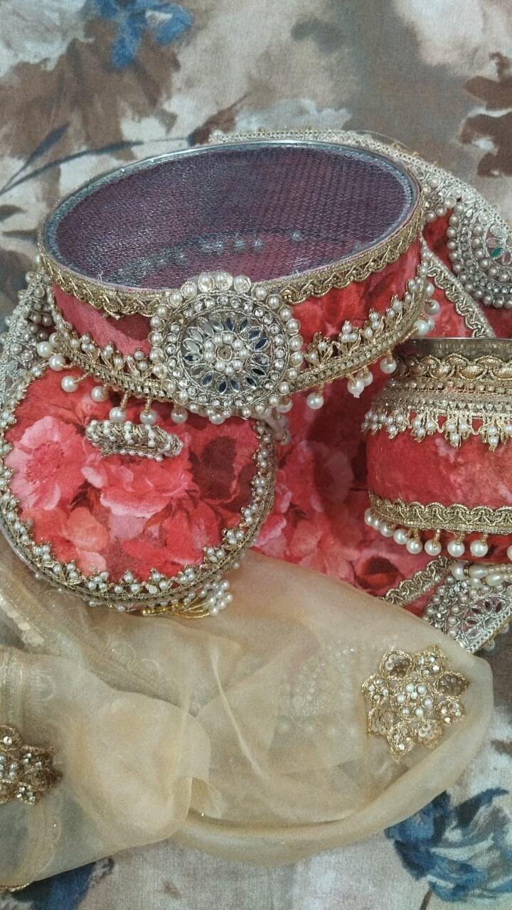 Celebrate the eternal bond of love with Jodidaarr’s Show-Stopper Karwachouth Set, a perfect blend of elegance and tradition. Designed to make your festival truly special, this premium set is handcrafted with precision and adorned with pearl-studded latkans that add a royal charm to your rituals.
